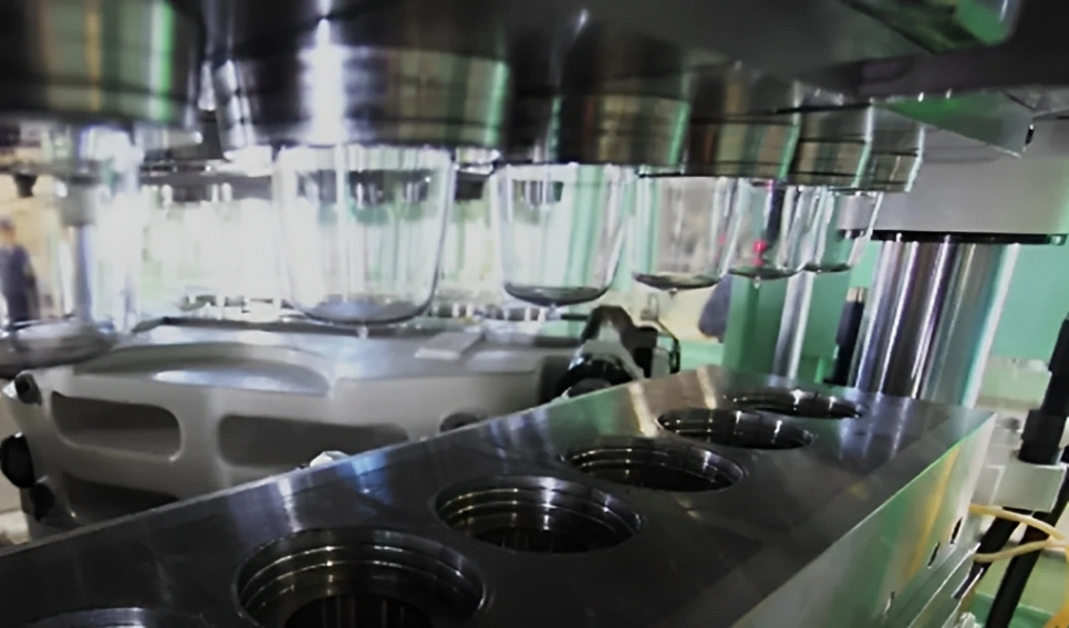 El material se funde y moldea en preformas que luego se moldearán por soplado inmediatamente en lo que es el proceso de fabricación de material a contenedor más rápido del mundo.